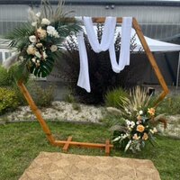 Nous avons loué de la décoration chez Pauline (arche, banquette, dame Jeanne, caisses à pommes et chevalet). Les échanges ont été très efficaces, elle est disponible et flexible pour récupérer et rendre le matériel. La décoration pour notre cérémonie laïque était parfaite, encore merci.